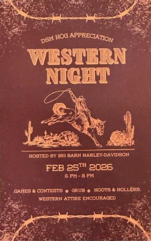 H.O.G. Appreciation Night at the Barn is BACK and its Western Night!!! Play Games & Win Prizes We love when Big Barn throws us a party to show their appreciation for being a HOG member. Come join in on the fun. Dress up or Don't --- either way it will be a great time.